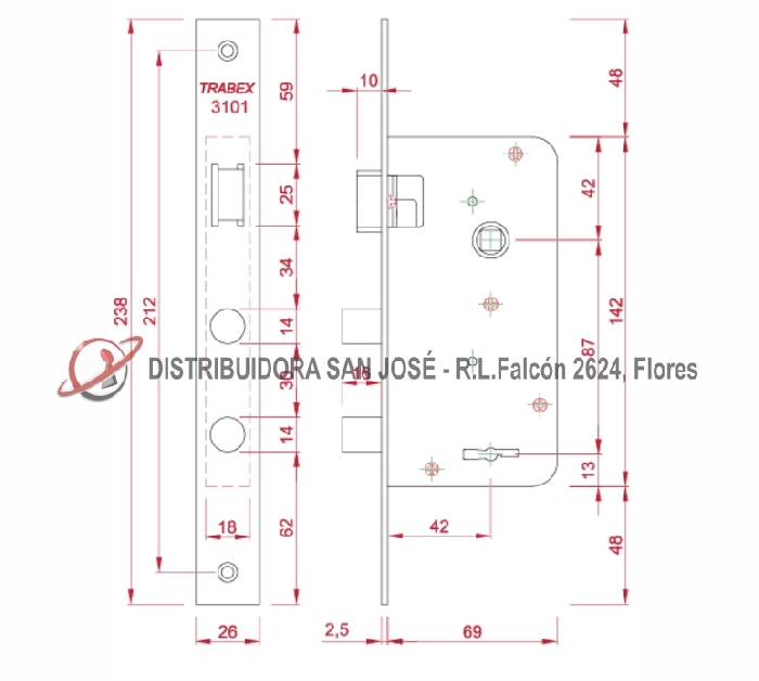 Descripción: CERRADURA DOBLE PALETA TRABEX MODELO CA6 3101