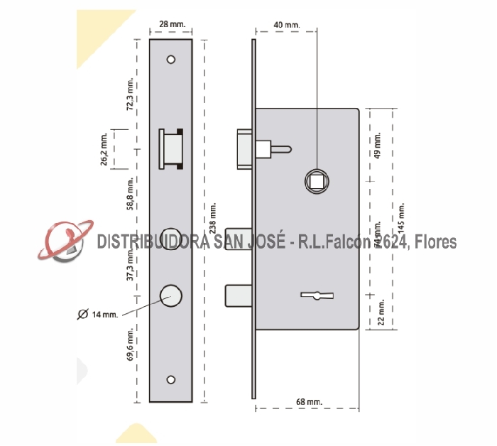 Frente 236 x 28 mm.