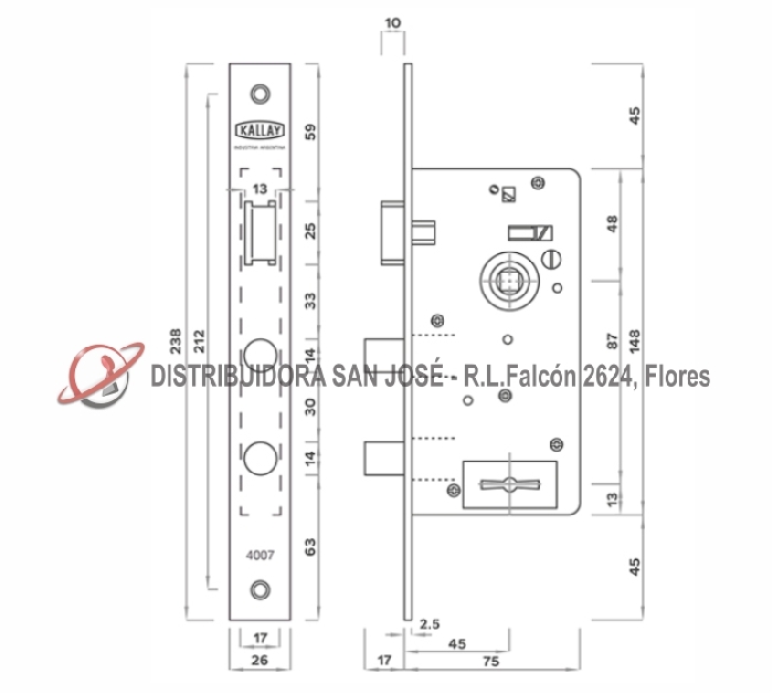 Descripción: CERRADURA DOBLE PALETA KALLAY 4007