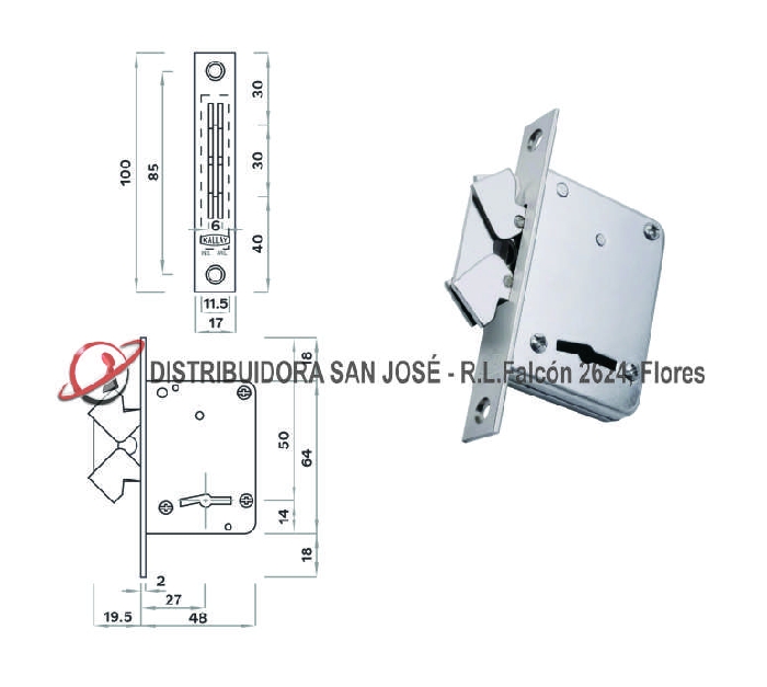 Descripción: CERROJO DOBLE PALETA CORREDIZO KALLAY 3012