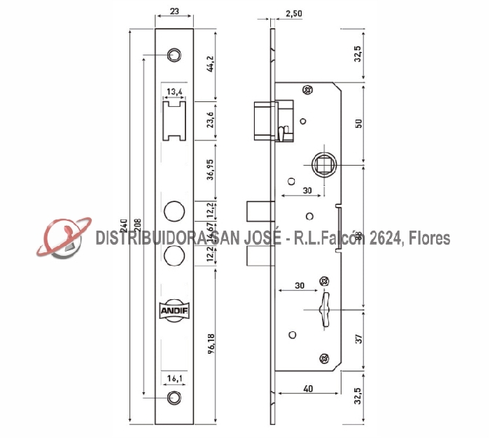 Descripción: CERRADURA DOBLE PALETA BATIENTE ANGOSTO