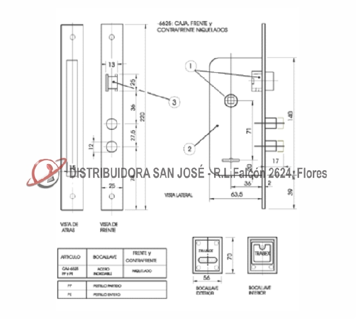 Descripción: CERRADURA DOBLE PALETA TRABEX MODELO CA4 6625