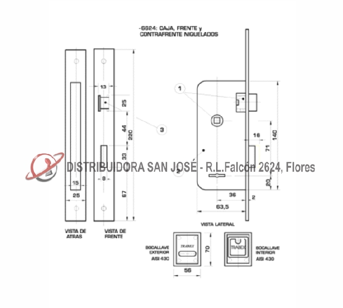 Descripción: CERRADURA DOBLE PALETA TRABEX MODELO CA4 6624 PE