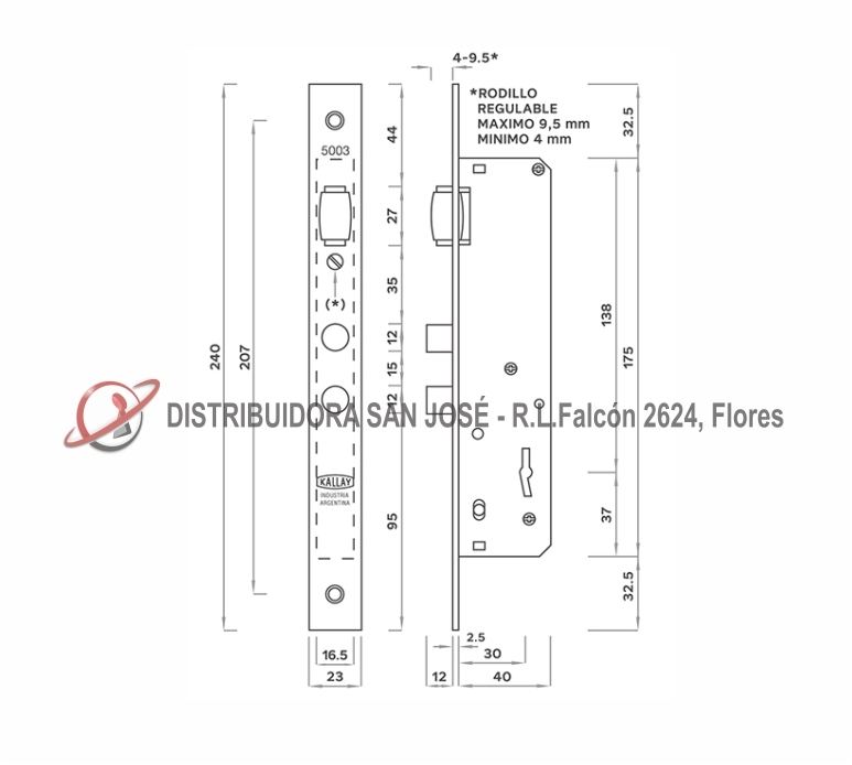 Descripción: CERRADURA DOBLE PALETA KALLAY 5003 VAI-VEN ANGOSTA