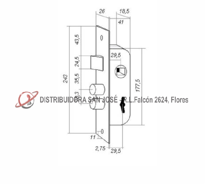 Descripción: CERRADURA DOBLE PALETA ROA 710 ANGOSTA
