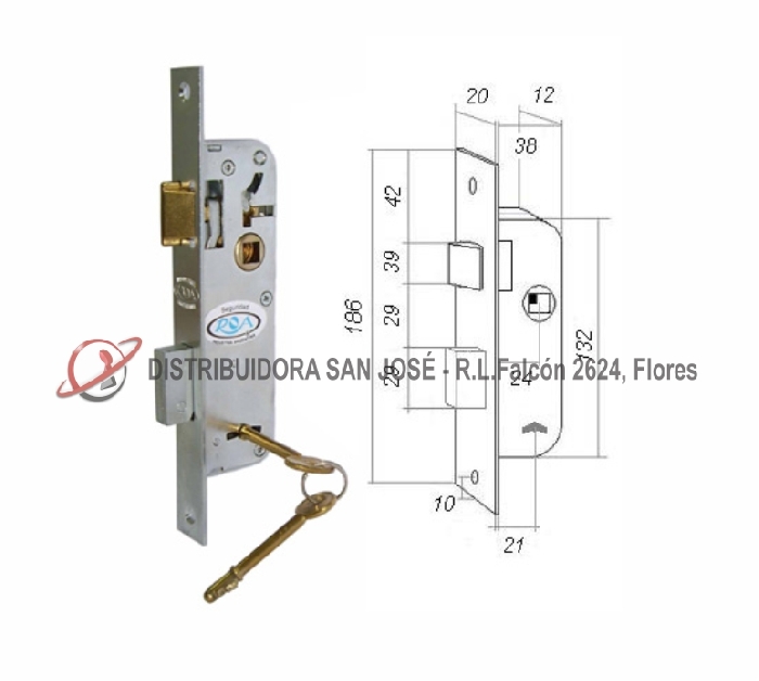 Descripción: CERRADURA DOBLE PALETA ROA 715