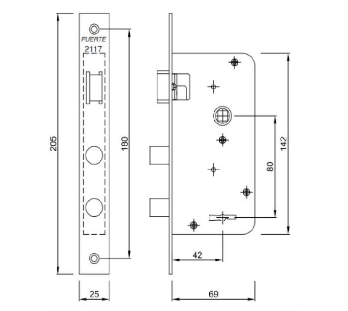 Descripción: CERRADURA DOBLE PALETA FUERTE MODELO 2117