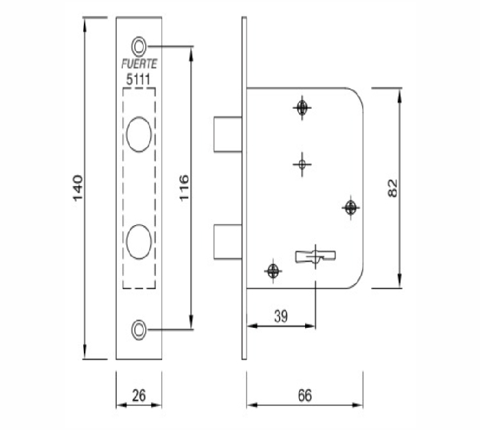 Descripción: CERROJO FUERTE DOBLE PALETA 5111