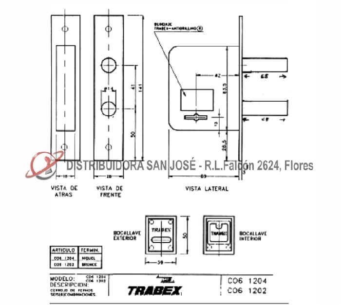 Descripción: CERROJO DOBLE PALETA TRABEX 1204