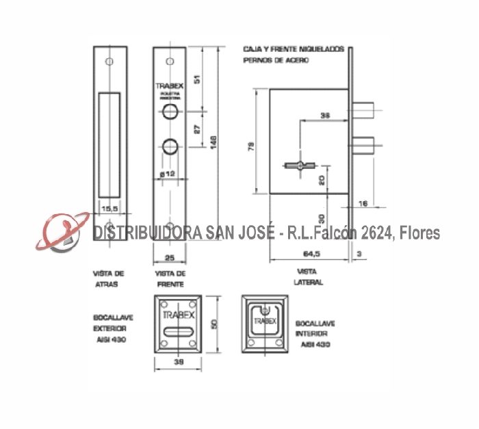 Descripción: CERROJO DOBLE PALETA TRABEX 625