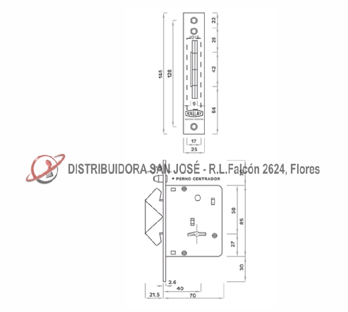 Descripción: CERROJO DOBLE PALETA KALLAY 4015